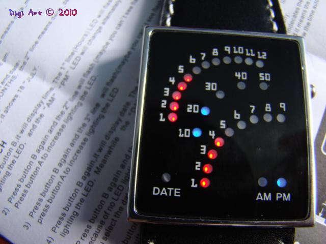 Всё идут и идут посылки из далека... И всё не мне. Ну, то есть, не мои заказы. Но, всё же... На сей раз, это довольно необычные часы - без стрелок и цифр, но с лампочками! Rare Style 29 Blue/Red LED Men Lady Wrist Watch Для понимания сколько они показывают времени требуется небольшая сноровка, потому как сообразить с непривычки сложно. Так что, их владельцу можно приписать "бонус" за стильность и оригинальность. P.S. На картинке часы показывают 17:26 :-)